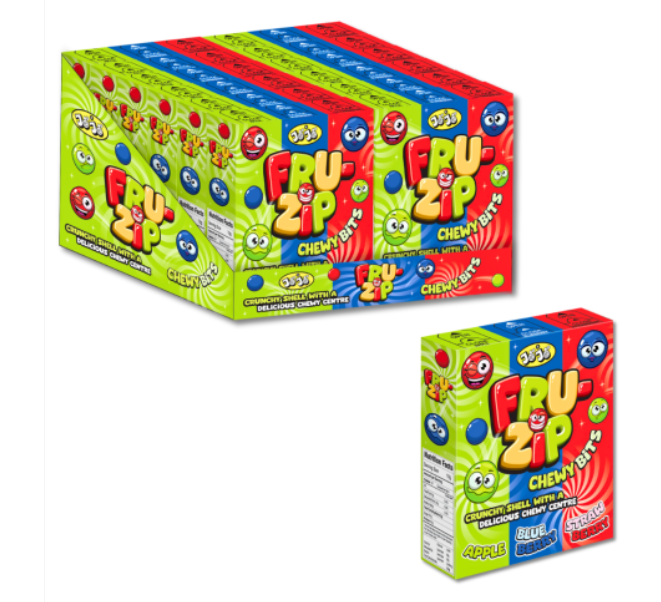 A colourful mix of apple, blueberry & strawberry chews, each with a crisp candy shell and a soft, juicy centre. A triple-fruit flavour explosion that’s chewy, crunchy and fun in every handful.